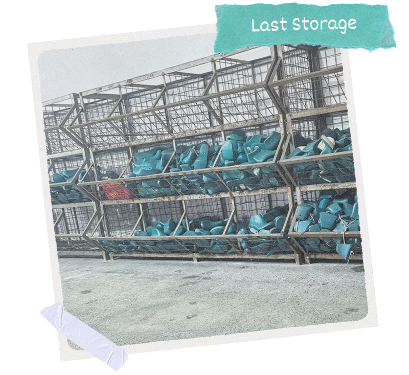 A last is a 3D foot-shaped mould that serves as the foundation for manufacturing shoes. Each style and size has a set of graded lasts that the uppers and outsoles are moulded to as the style is pieced together, which helps create the shape and form of the finished product. Traditionally shoe-making lasts were hand-carved from wood, but nowadays they are usually made from engineered plastic. Each style we make may have a different heel height and/or toe shape, so we have a huge selection of lasts in many shapes and sizes that demands a similarly huge, and well-organized, storage area!