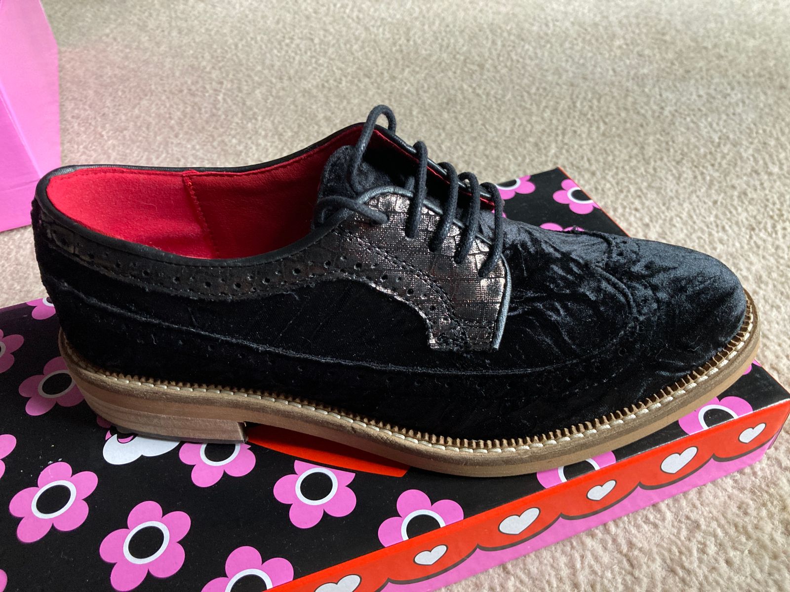 These stylish crushed velvet brogues are a versatile addition to any wardrobe. Plush black velvet with punched detailing is paired with metallic snakeskin trim to elevate this classic style brogue. Lace them up and be ready for any occasion in these stylish shoes.